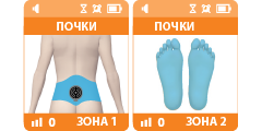 Программа для лечения воспалительных заболеваний мочевыводящих путей (пиелонефрит, цистит), диабетической нефропатии, реабилитации после приступа мочекаменной болезни. Воздействие проводится в пояснично-крестцовой зоне (зона 1) и в зоне стоп (зона 2). Рекомендуется курсовое лечение.