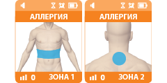 Программа применяется при наиболее часто встречающихся аллергических проявлениях: кожные высыпания, конъюнктивит, кашель, насморк. Воздействие проводится в проекции органов пищеварительной системы (1) и в зоне 7-го шейного позвонка (2). Программа сочетается с обработкой прямой проекции жалобы – области проявления аллергии (область носа, участки пораженной кожи).