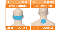 Программа коррекции артериального давления. Воздействие проводится в области 2-го шейного позвонка (зона 1) и области 7-го шейного позвонка (зона 2). Для стабильного результата рекомендуется курсовое применение.