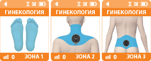 Программа для коррекции дисгормональных заболеваний: нарушение менструального цикла (аменорея, альгоменорея, дисменорея), бесплодие. Воздействие проводится в области стоп (1), пояснично-крестцовой зоне (2) и шейно-воротниковой зоне (3). Рекомендуется курсовое лечение с учетом цикла.