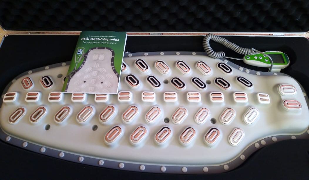 Завершит список необходимой ДЭНАС-техники аппарат НЕЙРОДЭНС-Вертебра. В отличие от первых двух аппаратов, у которых одна пара встроенных электродов, у Вертебра 48 пар электродов! За счет их попеременного включения на процедуре возникает электромассажный эффект. Но дело не только в приятном эффекте. НЕЙРОДЭНС-Вертбера – это настоящая поликлиника на дому, его возможности значительно шире просто лечебных процедур. Первое показание – лечение любой боли в спине (в мышцах, костях, позвоночнике, внутренних органах), но не менее важен антистрессовый и реабилитационный эффект от Вертебра-процедур.